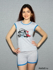 Милый комплект состоит из футболки и шорт, оформлен контрастной окантовкой. Имеет принт в области груди. Выполнен из высококачественного хлопкового материала.