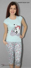 Прекрасный комплект, состоящий из футболки и капри. Изделия выполнены из натурального материала приятной расцветки. Отличный вариант для домашнего гардероба.
