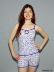 Очаровательный комплект, выполнен из 100% хлопкового материала.Состоит из удобного топа на тонких бретельках и шорт