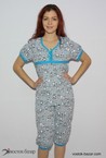 Простая и одновременно очаровательная пижама, выполненная из высококачественного хлопчатого материала. Состоит из футболки, имеющей красивую вставку в области груди и рукавов и украшение в виде бантиков. Также в комплект входят бриджи.