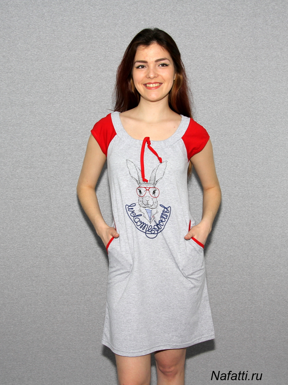 Прелестная туника, выполненная из натурального материала, оформлена симпатичным рисунком. Отличный вариант для домашнего гардероба.