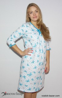 Отличная ночная сорочка, выполненная из натурального хлопка. Модель с округлым вырезом горловины. Изделие украшено контрастном принтом. Прекрасный вариант для домашнего уюта.