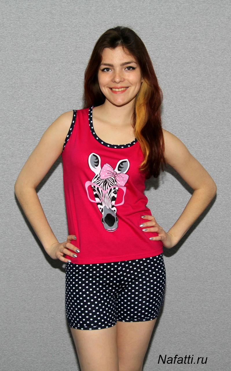 Прелестный комплект, выполненный из нежного хлопкового материала. Состоит из топа с принтом в области груди и шорт. Отличный вариант для домашнего отдыха.