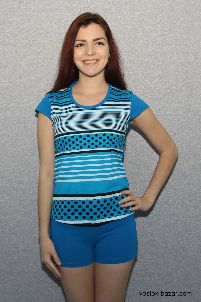 Женский домашний комплект, состоит из футболки и шорт. Удобный практичный,модной расцветки.Идеальная одежда на каждый день.