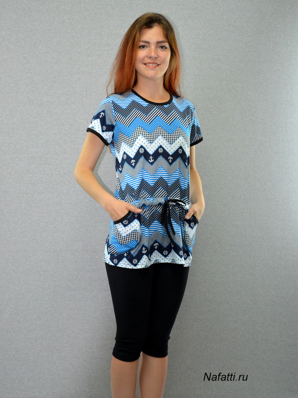 Прекрасный комплект, состоящий из туники с округлым вырезом горловины и бридж. Модель выполнена из качественного материала насыщенной расцветки, идеален для домашнего ношения.