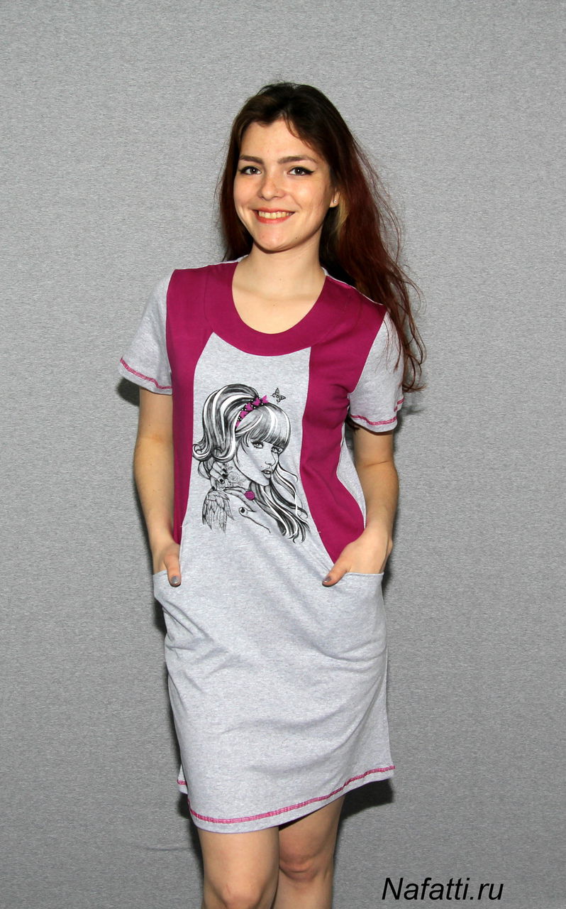 Симпатичная туника свободного покроя с короткими рукавами и округлым вырезом горловины. Прекрасный вариант на каждый день.