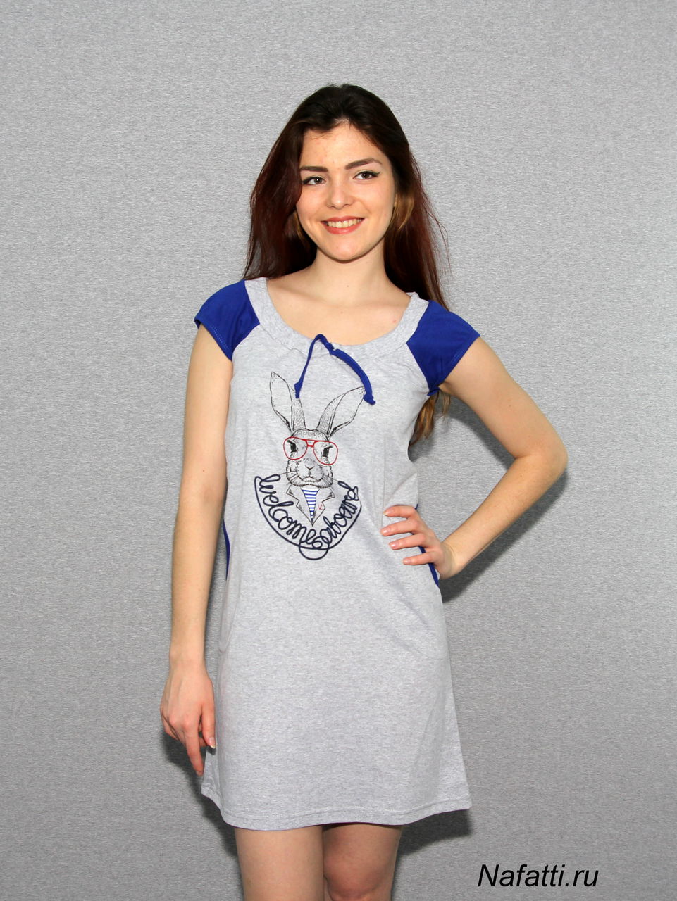Прелестная туника, выполненная из натурального материала, оформлена симпатичным рисунком. Отличный вариант для домашнего гардероба.