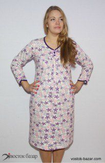 Ночная сорочка с длинным рукавом, оформлена двумя милыми бантиками в области груди. Отличный вариант для ночного отдыха.