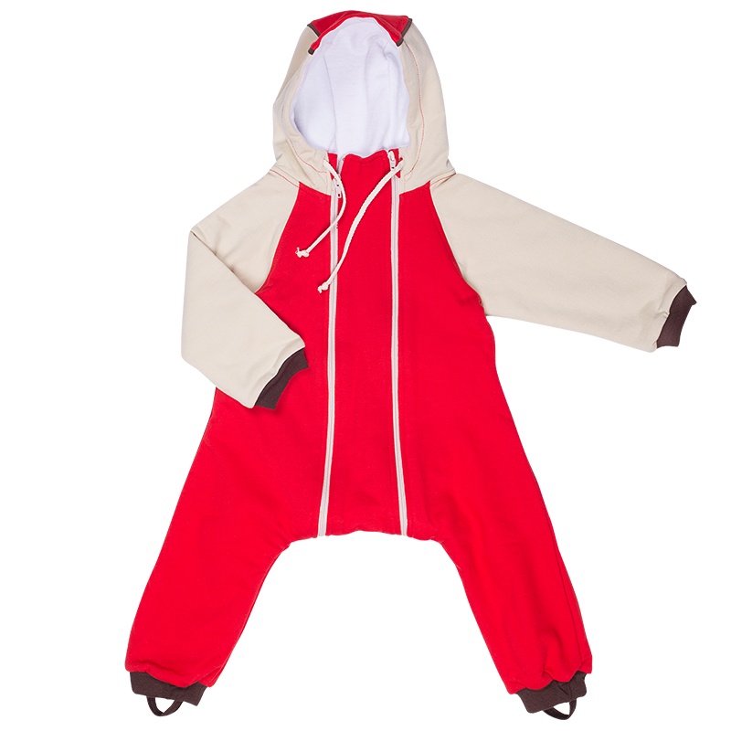 Сам комбинезон непродуваемый, молнии - с ветрозащитой, а капюшон - с завязками и высоким горлом. Всё это приятно дополняет основную особенность комбинезонов-бамбинизонов: возможность быстро и легко высаживать ребенка или менять подгузник на прогулке, в путешествии и дома.