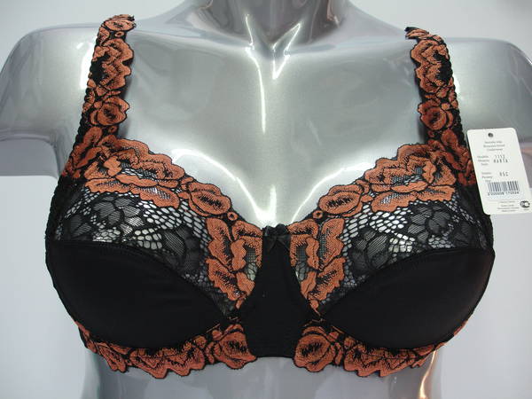 Бюстгальтер с мягкой чашечкой и диагональным швом из эластичного полотна и эластичного кружевного полотна, на каркасах. Чашечка имеет боковую поддерживающую деталь из кружевного полотна, цельнокроенную с передней частью брители. Задняя часть брители выполнена из эластичной тесьмы. Боковая поддерживающая деталь, бочка и передняя часть брители продублирована изнутри сетчатой основой. Нижняя часть чашечки и стан продублирована изнутри хлопковой основой. Спинка и стан выполнены из эластичного полотна. Высота бочка 8 - 11см. Регулятор длинны брители сзади. Застежка на два кручка, два варианта объема.