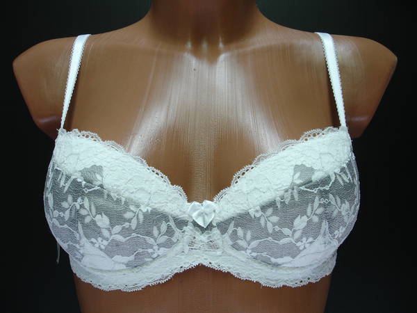 Бюстгальтер "пуш-ап" на средней перемычке с диагональным швом и чашечкой на тонкой поролоновой основе, сверху обтянутой эластичным кружевным полотном, на каркасах. Нижняя деталь с внутренней стороны с кармашком из хлопкового трикотажа, для вкладышей (съемные подушечки). Стан, бочка и спинка выполнены из эластичного кружевного полотна. Стан продублирован изнутри сетчатой основой. Высота бочка 7-9см. Регулятор длинны брители сзади. Застежка от 75А - 75D на одном крючке, 75Е - 90С на два кручка, два варианта объема. Между чашечками на стане украшен маленьким бантиком.