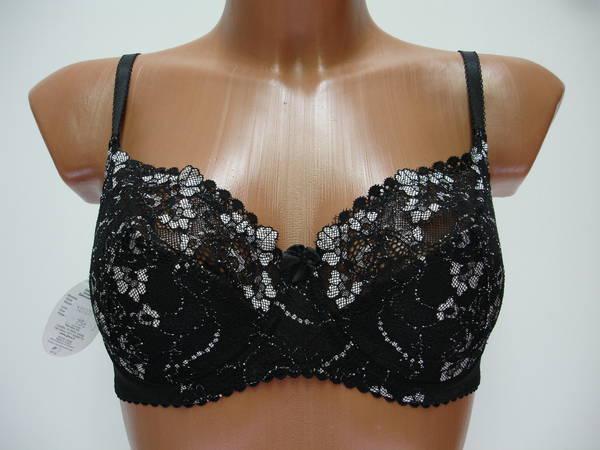 Бюстгальтер полупаралон с мягкой чашечкой и диагональным швом, нижняя деталь с Т-образным швом, на каркасах. Бюстгальтер на тонкой поролоновой основе обтянутой эластичным кружевным полотном в нижней части чашки, верхняя деталь чашки из эластичного кружевного полотна. Бочка и спинка выполнены из эластичного полотна. Стан выполнен из эластичного кружевного полотна и продублирован изнутри сетчатой основой. Высота бочка 7-9см. Регулятор длинны брители сзади. Застежка от 75С,75D на одном крючке, от 75Е - 90Е на два кручка, два варианта объема. Между чашечками на стане украшен маленьким бантиком.