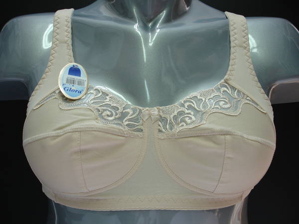 не эластичного кружевного полотна в верхней части чашечки, без каркасов. Нижняя часть чашечки продублирована изнутри хлопковой основой. Спинка и стан выполнены из эластичного полотна. Бочек из эластичного полотна цельнокроен с передней частью брители. Бюстгальтер имеет широкие брители не стесняющие движений, которые снимают напряжение в области плеч благодаря уплотненной вставке из тонкого поролона. Бритель обтянута основной тканью. Задняя часть брители выполнена из эластичной тесьмы. Регулятор длинны брители сзади. Высота бочка 12-17см. Застежка на три кручка, два варианта объема. Между чашечками на стане украшен маленьким бантиком.