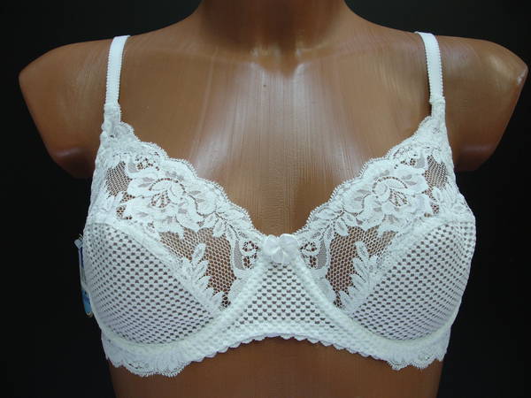 Бюстгальтер с мягкой чашечкой и диагональным швом из эластичного кружевного полотна, на каркасах. Нижняя часть чашечки продублирована изнутри сетчатой основой. Стан, бочка и спинка выполнены из эластичного кружевного полотна. Стан продублирован изнутри сетчатой основой. Высота бочка 9-11 см. Регулятор длинны брители сзади. Застежка от 75В-75D на одном крючке, от 75Е, 80В- 85Е на два кручка, два варианта объема. Между чашечками на стане украшен маленьким бантиком.