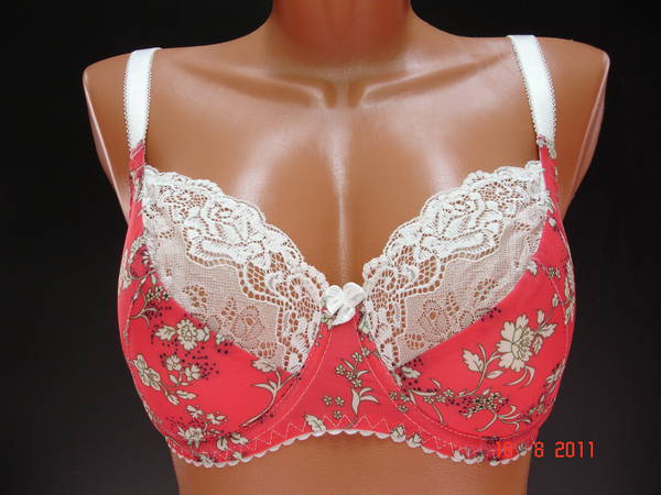 Бюстгальтер полупаралон с мягкой чашечкой и диагональным швом, нижняя деталь с Т-образным швом, на каркасах. Бюстгальтер на тонкой поролоновой основе обтянутой эластичным полотном в нижней части чашки, верхняя деталь чашки из сеточки с очень красивой вышивкой. Стан, бочка и спинка выполнены из эластичного полотна. Стан продублирован изнутри сетчатой основой. Высота бочка 7- 9см. Регулятор длинны брители сзади. Застежка от 75С,75D на одном крючке, от 75Е - 90Е на два кручка, два варианта объема. Между чашечками на стане украшен маленьким бантиком.