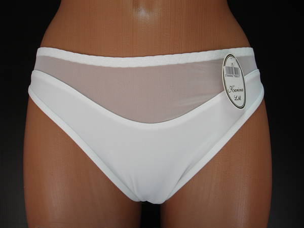 Трусики-слип со средней линией талии из эластичного полотна на передней и задней детали. Спереди вставочка из сетчетого полотна. Трусики-слип сделаны с использованием хлопковой ластовицы.