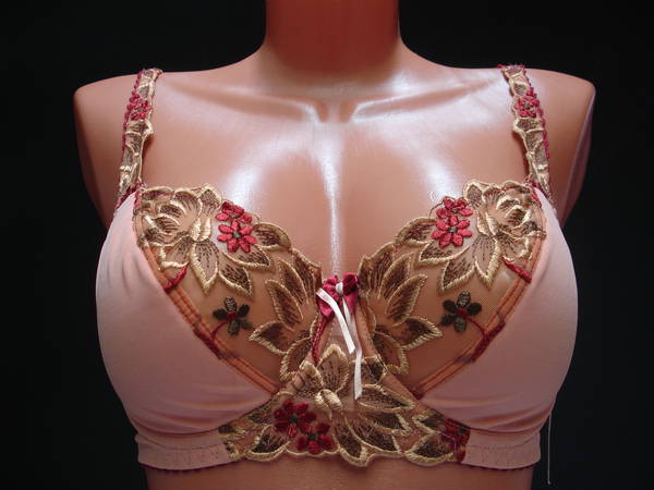 Бюстгальтер полупоролон с мягкой чашечкой и диагональным швом, на каркасах. Бюстгальтер на тонкой поролоновой основе в нижней части чашки, верхняя деталь чашки из эластичного кружевного полотна. Стан, бочка и спинка выполнены из эластичного полотна. Боковые косточки обеспечивают дополнительную поддержку груди. Стан и бочка продублированы изнутри сетчатой основой. Высота бочка 7- 9см. Регулятор длинны бретели сзади. Застежка на одном крючке, два варианта объема. Между чашечками на стане украшен маленьким бантиком.