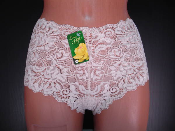 Трусики-шорты со средней линией талии из эластичного кружевного полотна на передней и задней детали. Трусики-слип сделаны с использованием хлопковой ластовицы.