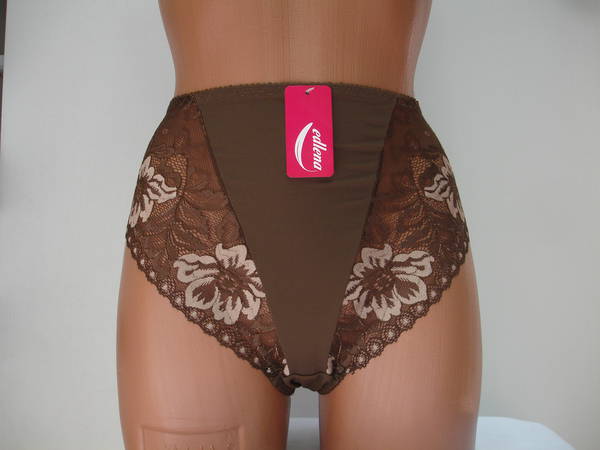 Трусики-слип с высокой линией талии из эластичного кружевного полотна и эластичного полотна (мягкой микрофибры, которая дарит ощущение комфорта ) на передней детали. Задняя деталь выполнена из эластичного полотна. Трусики-слип сделаны с использованием хлопковой ластовицы.