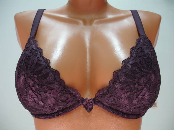 Бюстгальтер "пуш-ап" на тонкой перемычке, с диагональным швом и чашечкой на тонкой поролоновой основе, сверху обтянутой эластичным кружевным полотном, на каркасах. Нижняя деталь с внутренней стороны с кармашком из хлопкового трикотажа, для вкладышей (съемные подушечки). Бочка и спинка выполнены из эластичного кружевного полотна. Высота бочка 6- 7см. Регулятор длинны бретели сзади. Застежка на одном крючке, два варианта объема. Между чашечками на стане украшен маленьким бантиком.