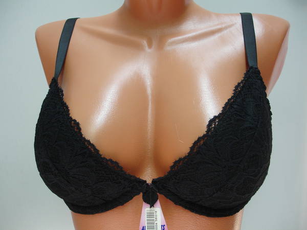 Бюстгальтер "пуш-ап" на тонкой перемычке, с диагональным швом и чашечкой на тонкой поролоновой основе, сверху обтянутой эластичным кружевным полотном, на каркасах. Нижняя деталь с внутренней стороны с кармашком из хлопкового трикотажа, для вкладышей (съемные подушечки). Бочка и спинка выполнены из эластичного кружевного полотна. Высота бочка 6- 7см. Регулятор длинны бретели сзади. Застежка на одном крючке, два варианта объема. Между чашечками на стане украшен маленьким бантиком.