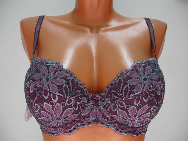 Бюстгальтер "пуш-ап" на средней перемычке с диагональным швом и чашечкой на тонкой поролоновой основе, сверху обтянутой эластичным кружевным полотном, на каркасах. Нижняя деталь с внутренней стороны с кармашком из хлопкового трикотажа, для вкладышей (съемные подушечки). Стан, бочка и спинка выполнены из эластичного кружевного полотна. Стан продублирован изнутри сетчатой основой. Высота бочка 7- 9см. Регулятор длинны бретели сзади. Застежка от 75А - 75D на одном крючке, 75Е - 90С на два крючка, два варианта объема. Между чашечками на стане украшен маленьким бантиком.
