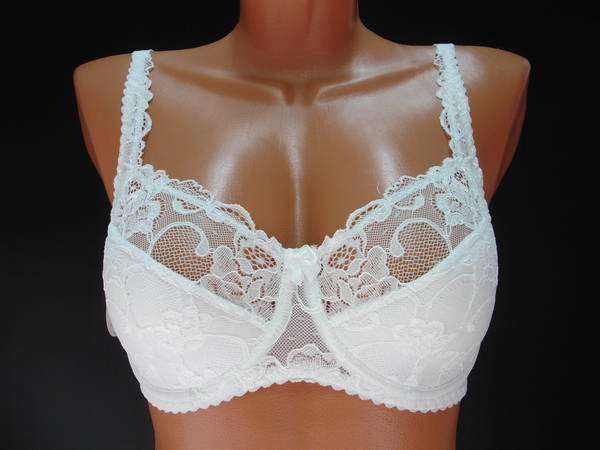 Бюстгальтер полупоролон с мягкой чашечкой и диагональным швом, нижняя деталь с Т-образным швом, на каркасах. Бюстгальтер на тонкой поролоновой основе обтянутой эластичным кружевным полотном в нижней части чашки, верхняя деталь чашки из эластичного кружевного полотна. Бочка и спинка выполнены из эластичного полотна. Бочка продублированы изнутри хлопковой основой. Стан выполнен из эластичного кружевного полотна и продублирован изнутри сетчатой основой. Боковая косточка обеспечивает дополнительную поддержку груди. Высота бочка 7- 11см. Регулятор длинны бретели сзади. Застежка на два кручка, два варианта объема. Между чашечками на стане украшен маленьким бантиком.