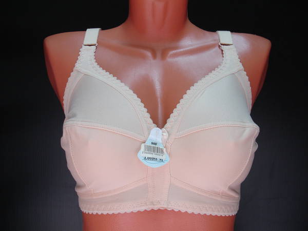 Бюстгальтер с мягкой чашечкой и диагональным швом, нижняя деталь с Т-образным швом из эластичного полотна, без каркасов. Нижняя часть чашечки продублирована изнутри хлопковой основой. Спинка, стан и бочка выполнены из эластичного полотна. Регулятор длинны бретели сзади. Застежка на два кручка, два варианта объема. Между чашечками на стане украшен маленьким бантиком.