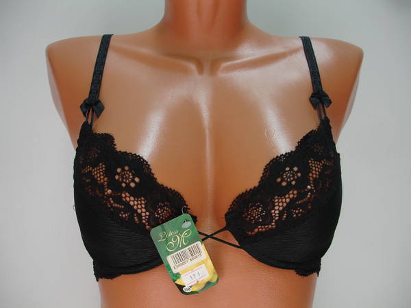 Бюстгальтер с мягкой чашечкой и диагональным швом из эластичного полотна и эластичного кружевного полотна, на каркасах. Чашечки бюстгальтера скреплены между собой двумя тонкими тесёмками. Нижняя часть чашечки продублирована изнутри хлопковой основой. Бочка и спинка выполнены из эластичного кружевного полотна. Высота бочка 6-9 см. Регулятор длинны бретели сзади. Застежка на два крючка, два варианта объема.