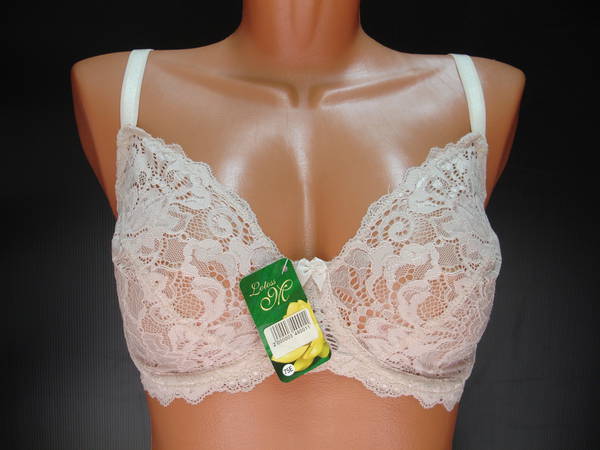 Бюстгальтер с мягкой чашечкой и диагональным швом из эластичного кружевного полотна, на каркасах. Нижняя часть чашечки продублирована изнутри сетчатой основой. Стан, бочка и спинка выполнены из эластичного кружевного полотна. Стан продублирован изнутри сетчатой основой. Высота бочка 9-11 см. Регулятор длинны брители сзади. Застежка от 75В-75D на одном крючке, от 75Е, 80В- 85Е на два кручка, два варианта объема. Между чашечками на стане украшен маленьким бантиком.