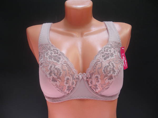 Бюстгальтер с мягкой чашечкой и диагональным швом из эластичного полотна и эластичного кружевного полотна, на каркасах. Стан, бочка и спинка выполнены из плотного эластичного полотна. Стан продублирован изнутри сетчатой основой. Бочёк бюстгальтера продублирован изнутри очень тонкой поролоновой основой, которая обеспечивает дополнительную поддержку груди. Высота бочка 9- 10 см. Бюстгальтер имеет широкие разгрузочные бретели не сворачивающиеся и не стесняющие движений, которые снимают напряжение в области плеч и шеи