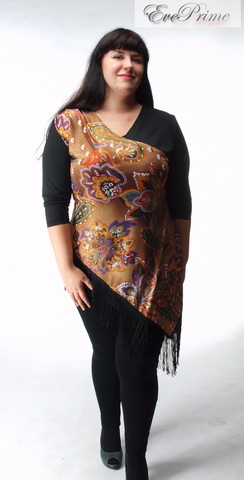 Оригинальная, яркая туника "Амира" из нежной вискозы придаст вам индивидуальности и исключительности. Произведёт фуррор в клубе, в ресторане, а так же придаст уверенности и хорошего настроения в повседневной жизни. Имитация платка с бахромой внизу, лёгкая сборка на плече (рекомендуем украсить брошью в месте сборки).