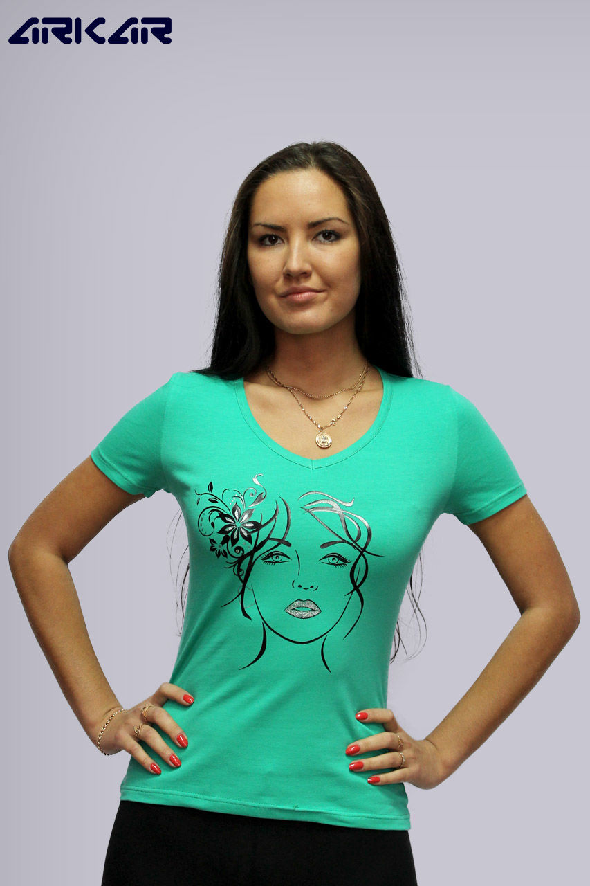 КЛАСС-ВЕРХНИЙ ТРИКОТАЖ. Классическая футболка с коротким рукавом. Оригинальный принт ввиде лица девушки изумительной и женственной.Ткань обладает износостойкостью и долго сохраняет цвет.